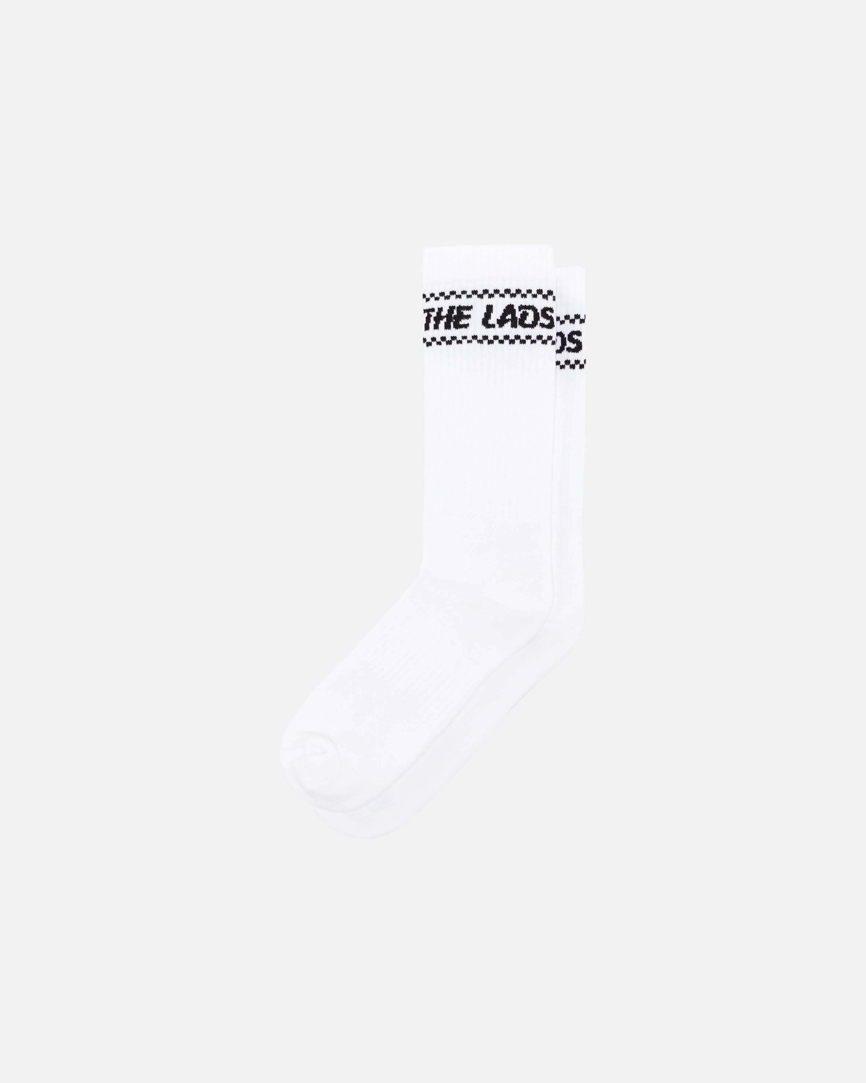 - White cotton blend ribbed socks.
